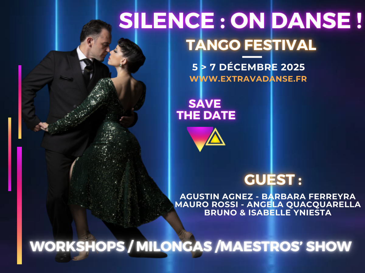 Pour votre plus grand plaisir, cette nouvelle édition du festival "Silence, on danse !" réunira, du 05 au 07 décembre 2025, des artistes talentueux, venus partager avec vous des jours et des nuits de cours, de démonstrations et de milongas inoubliables.