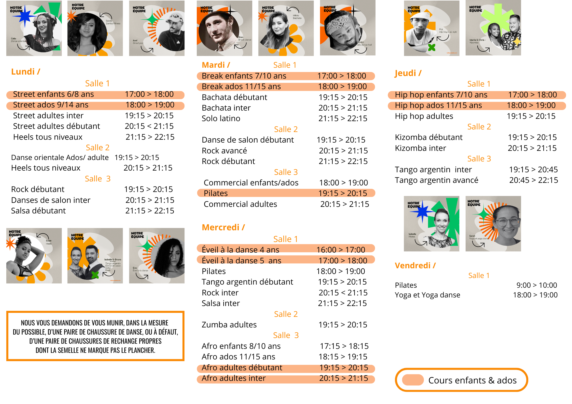 Nouveautés : Bachata, Heels, Yoga & yoga danse, danse orientale, Zumba, Commercial et de l’Afro Dancehall ! Sans oublier le Break dance, discipline nouvelle aux JO !